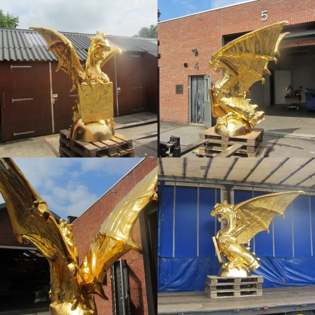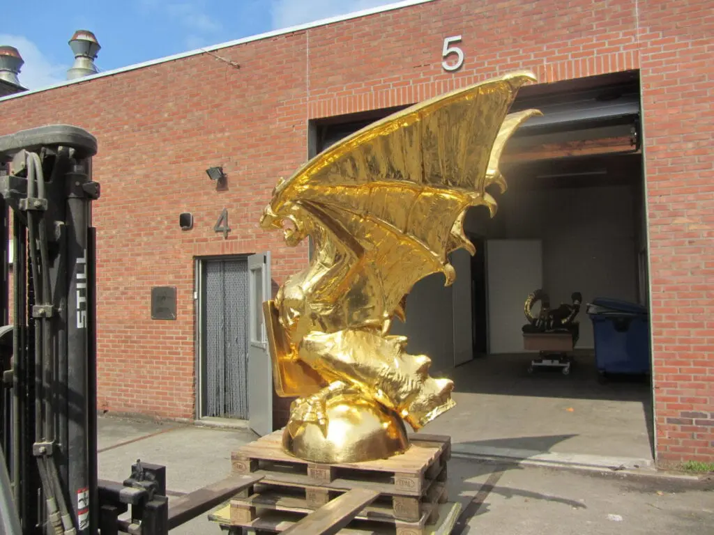 De draak was twintig jaar geleden voor het laatst verguld en kan nu weer zeven tot tien jaar vooruit. ‘Het ijzer binnenin heeft ook te lijden’, weet Voshart. ‘Wil je dat herstellen, dan moet je daar grondig de tijd voor uittrekken.’ Dat is op termijn waarschijnlijk weer een mooi project voor de Achterhoeker, een van de weinige fulltime vergulders in Nederland. ‘De draak staat nu nog beveiligd binnen, maar wordt 27 juli teruggeplaatst. Of ik daarbij ben? Nee, dan ben ik lekker op vakantie.’