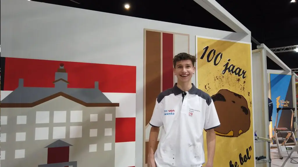 Blij was hij met het resultaat, gaf hij aan, op dat moment nog in het ongewisse over de uitslag. En, zoals ze dat graag zien in het Twentse, er zit een nuchtere kop op. Te midden van de duizelingwekkende aantallen – 620 finalisten verdeeld over 7 hallen tijdens de jaarlijkse mbo-beroepenwedstrijd met naar schatting 23.500 bezoekers, onder wie de onderwijsministers – bleef hij kalm. ‘Ik vond de voorronde veel spannender.’