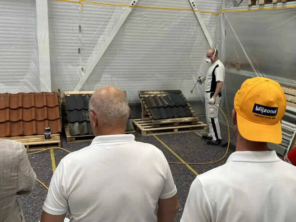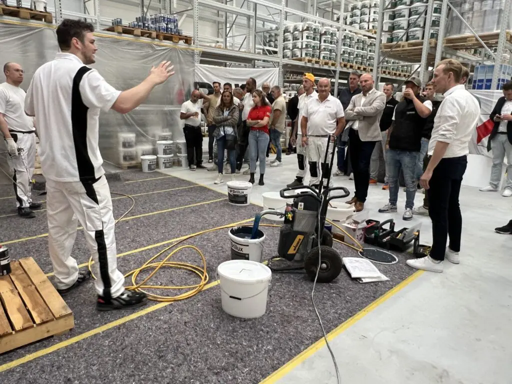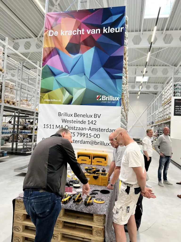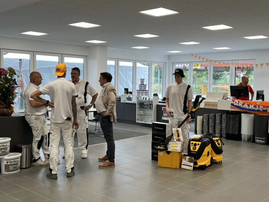 Zij konden het filiaal (met verkoopruimte, magazijn en kantoorplekken) bezichtigen en daarnaast productdemonstraties van schuurspecialist Mirka en van een Brillux-dakpannencoating aanschouwen.