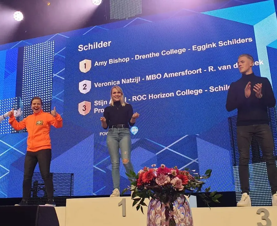 Wat het resultaat in Oostenrijk (16-20 september) ook wordt, de nationale winst van Amy Bishop is volgens Wierts al een enorme oppepper voor het schildersvak. ‘Wij dragen dat niet zo uit. Noem het Noord-Nederlandse bescheidenheid. Maar Amy en de school mogen trots zijn op deze prestatie.’