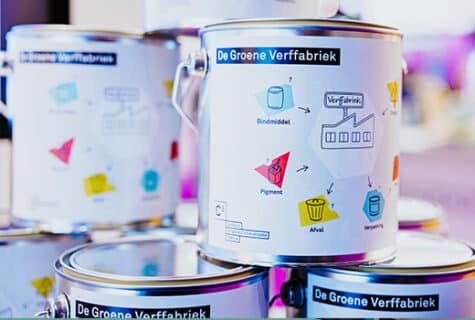 In De Groene Verffabriek-les ontwerpen leerlingen hun eigen verffabriek en maken ze belangrijke keuzes die de duurzaamheid en kosten van hun fabriek beïnvloeden. Ze specialiseren zich eerst in een van de zes vakgebieden: energie, verpakkingen, bindmiddelen, pigmenten, vervoer of afval.