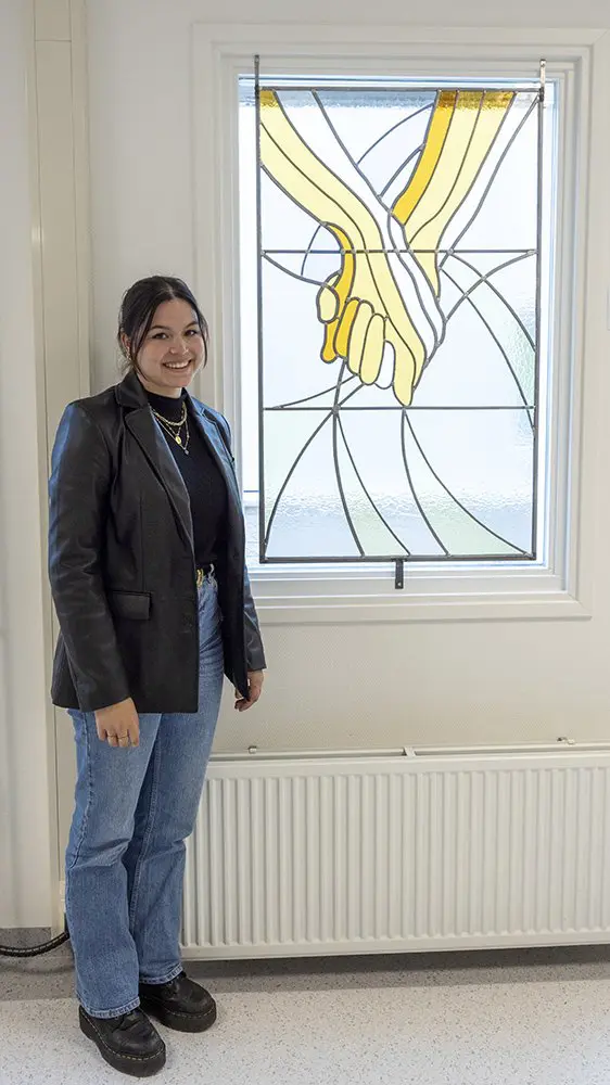 Sietske van Loenen, afdelingshoofd facilitair bedrijf, nam de ramen namens MMC onlangs in ontvangst: “wat een leuk, energiegevend project”, stelt ze. “Bijzonder om te zien hoe alle studenten de herdenkingsramen op hun eigen creatieve manier hebben ingevuld.”