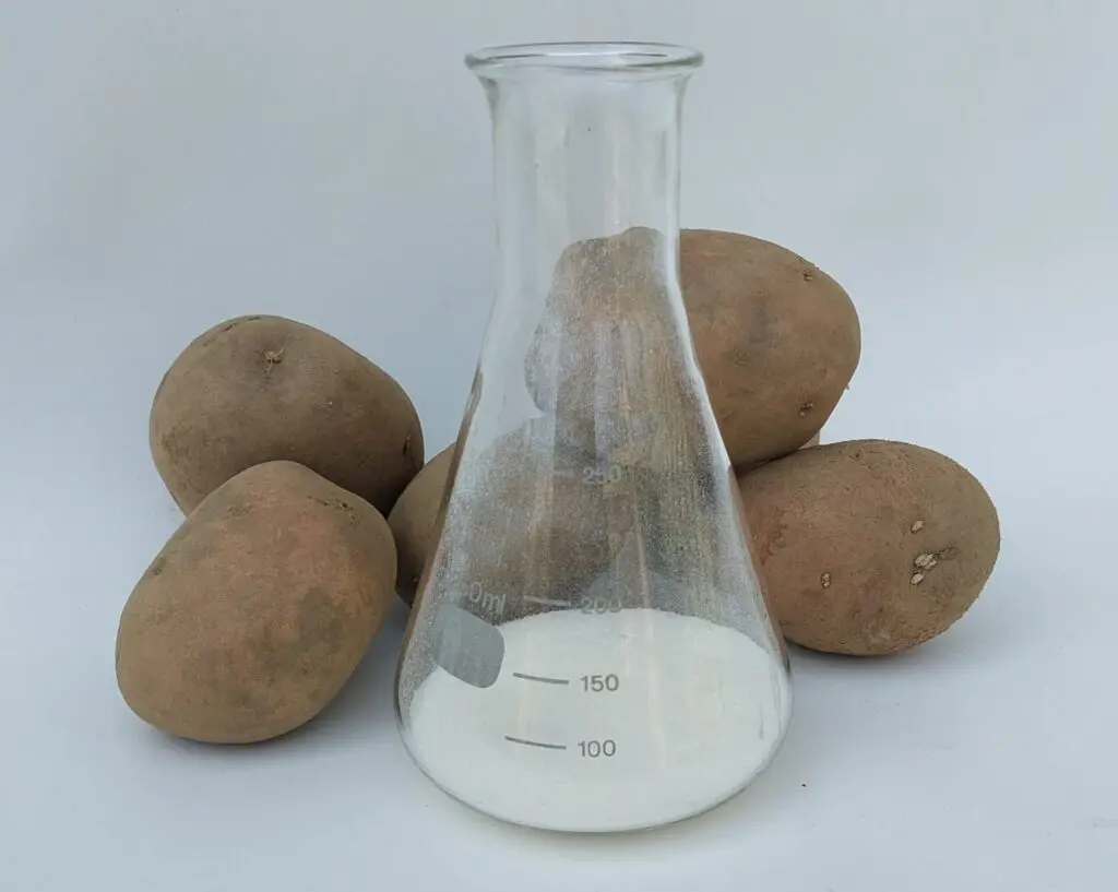 De grondstoffen voor zetmeel zijn aardappelen, maismeel en tarwe