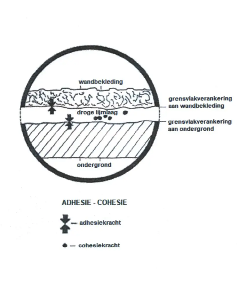 De natuurlijke begrippen adhesie, cohesie en verankering spelen een rol bij het verlijmen en plakken van wandbekleding