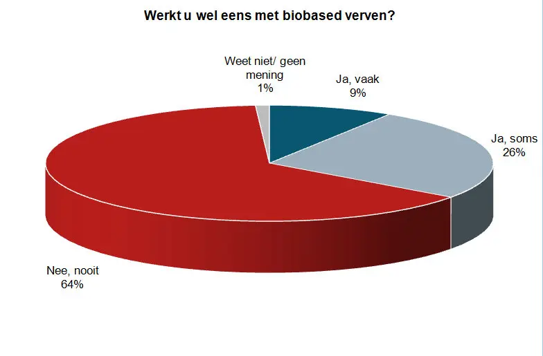 Biobased verven zijn beter voor de gezondheid en het milieu – zo is de perceptie – maar toch heeft bijna tweederde van de schilders hier nog nooit mee gewerkt. Niet zozeer omdat de kwaliteit minder is, maar vanwege het ontbreken aan kennis, omdat hun klanten er niet om vragen en het moeilijker is te verwerken (droogtijd). Overigens blijken de definities van een biobased verf behoorlijk uiteen te lopen.