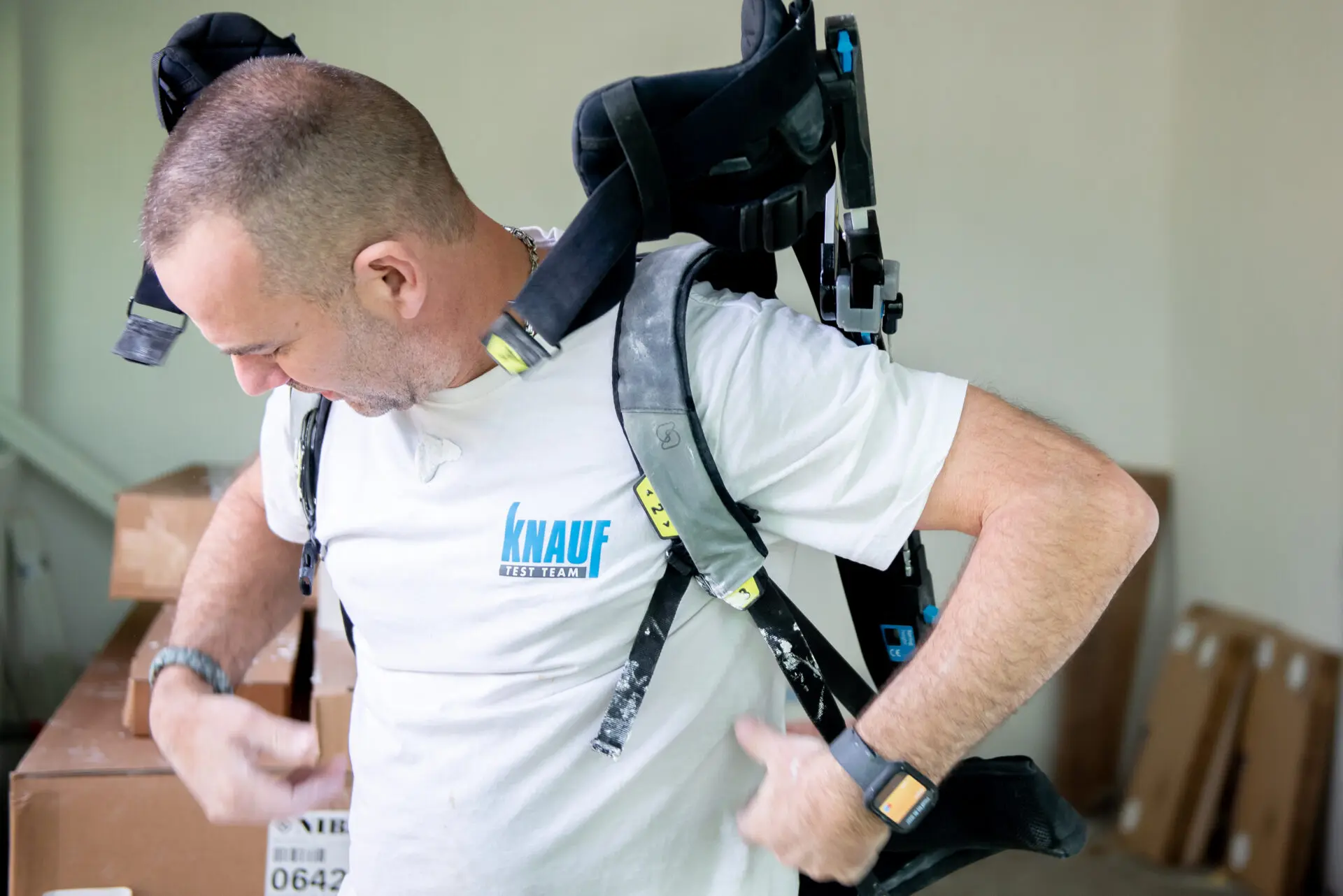 Wie overweegt een exoskelet aan te schaffen doet er goed aan een belletje naar Knauf te doen. De leverancier van gipsproducten is een drijvende kracht achter het onderzoek dat in samenwerking met stukadoorsondernemersvereniging NOA en onderzoeksorganisatie TNO is opgezet. Gekozen is voor het exoskelet van de Nederlandse leverancier Skelex. Met die organisatie wordt een inkoopdeal gesloten. Daardoor zijn de exoskeletten binnenkort voor circa 2500 euro te koop via de kanalen van Knauf.