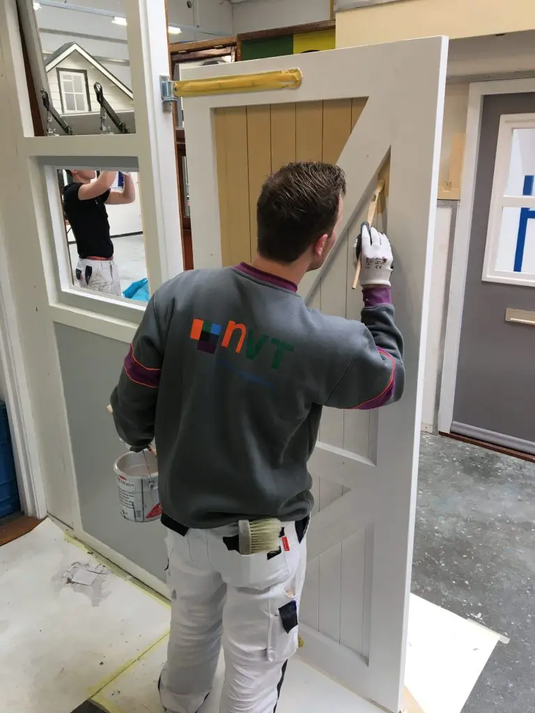In de nieuwe opzet van Nimeto Utrecht en dé Schildersvakschool Den Haag-Leiden-Gouda deed examenkandidaat Brian Schelvis de Proeve van Bekwaamheid voor de opleiding Schilder niveau 2. Hij vertelt: “Deze vorm van examineren vond ik prettig. Je maakt je voor het examen zenuwachtig, maar via deze manier werd je gerustgesteld door degene die je begeleidt tijdens de uitvoering van de Proeve van Bekwaamheid. Ook had ik voldoende tijd om de werkzaamheden uit te voeren. Zelfs als ik een onderdeel fout deed, kon ik dit op tijd herstellen.”