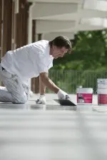 “Het systeem is binnen twee uur na applicatie beloopbaar. Bovendien is het slijtvast, snel te verwerken, goed reinigbaar en niet vergelend”, aldus Paulich. De hoogglanzende coating is verkrijgbaar in verschillende kleurechte RAL-kleuren. “De verwerking van Sigmafloor Rapidcoat 2K Gloss moet je wel goed voorbereiden omdat je tijdtechnisch nauwelijks marge hebt. Met dat aandachtspunt in het achterhoofd is het prima werken met deze coating. Het resultaat is mooi en robuust.” Paulich Vloeren werkt inmiddels ruim 20 jaar voor bedrijven, scholen, woningbouwcorporaties en aannemers. Sinds enkele jaren is het bedrijf ook actief in de particuliere sector. Paulich levert onder andere vloercoatings, PU-gietvloeren, betonlook vloeren, epoxyvloeren, anti-statische vloeren en teer-epoxy vloeren. Daarnaast voert het veel reparatiewerk en balkon- en galerijrenovaties uit.