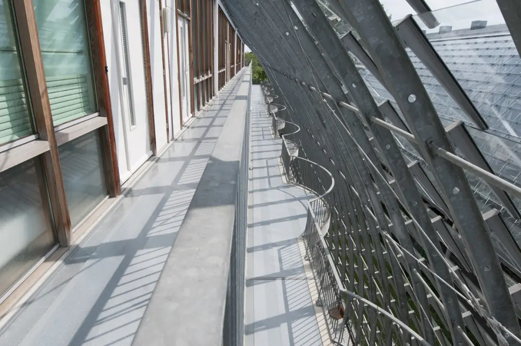 Door de ontstane gebreken was de vloer niet bestand tegen de grillen van het klimaat. In overleg met de opdrachtgever, woningbelegger Vesteda Property Management, besloot vloerspecialist Paulich Vloeren de bestaande verflagen geheel te verwijderen, de vloeren te repareren en egaliseren en vervolgens te voorzien van een volledig nieuw opgebouwd coatingsysteem in twee lagen. Esthetica, duurzaamheid en veiligheid stonden voorop. Vandaar dat door het bedrijf werd gekozen voor een robuust systeem in een gedekte blauwgrijze kleurtint met antislipvoorziening. Daarnaast was van belang dat de vloer weer snel beloopbaar moest zijn. Bewoners moeten zo snel mogelijk weer van en naar hun woningen kunnen.