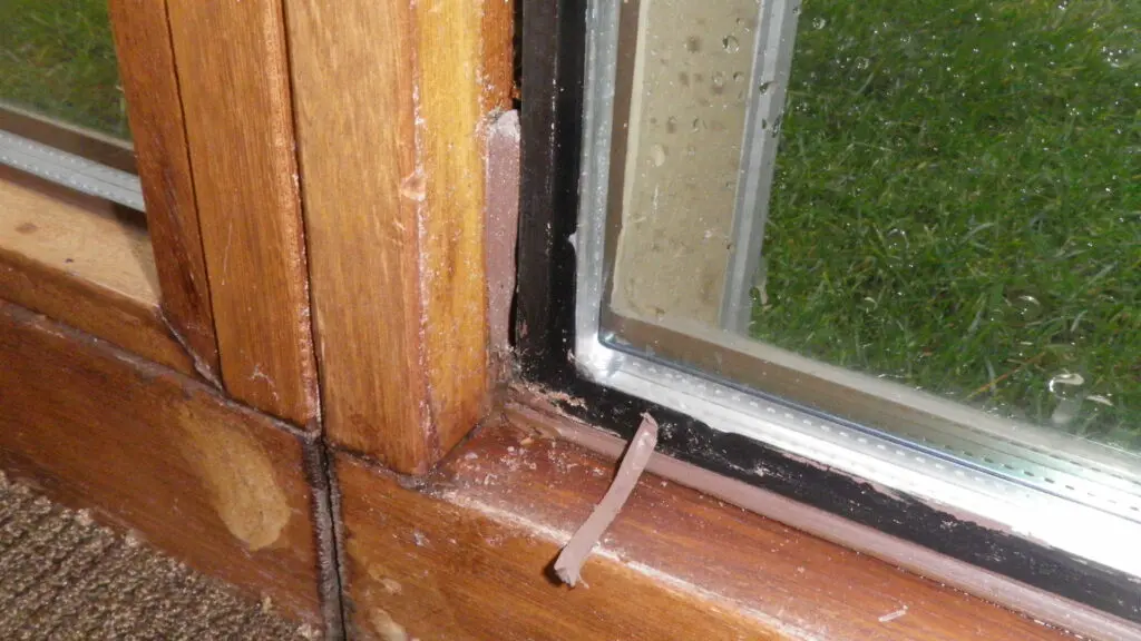 Bij het verwijderen van verschillende liggende glaslatten is geconstateerd dat het onder de glaslatten nat is en regenwater naar binnen wordt gestuwd. Wanneer de liggende en staande glaslatten hier worden verwijderd, is de dorpel geheel of deels nat.