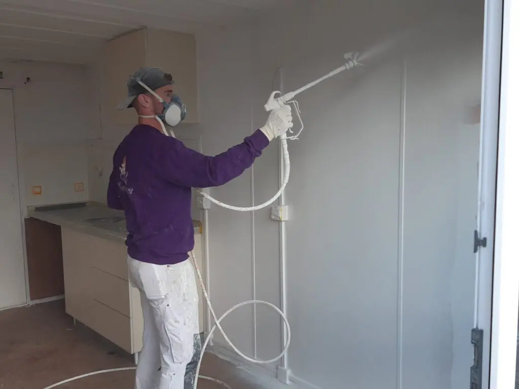 Uiteraard moesten eerst de schimmels worden geëlimineerd. ‘Die heb ik ingespoten met een schimmeldodend preparaat. Dat moest twee dagen intrekken en toen heeft mijn vader – 64 jaar, bril en mondkap op – alle schimmels met een harde borstel eraf gekrabd. Het was dertig graden, maar mijn vader heeft dat klusje bijna met twee vingers in de neus gedaan.’ De donkere, vieze plekken waar de schimmels zaten, zijn behandeld met Sigma Stainaway. Een product dat vlekken isoleert dankzij een speciale bloktechnologie. Tot slot hebben de schilders – na de stalen delen aan de buitenkant te hebben geschilderd met de PPG Spraymaster – alle containers van binnen afgespoten met Zinsser. Daardoor kunnen de woningen deze maand gemeubileerd worden opgeleverd.