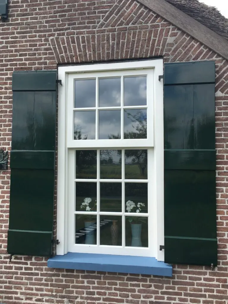 Baanderdeuren van een woonboerderij in de lijnolieverf.