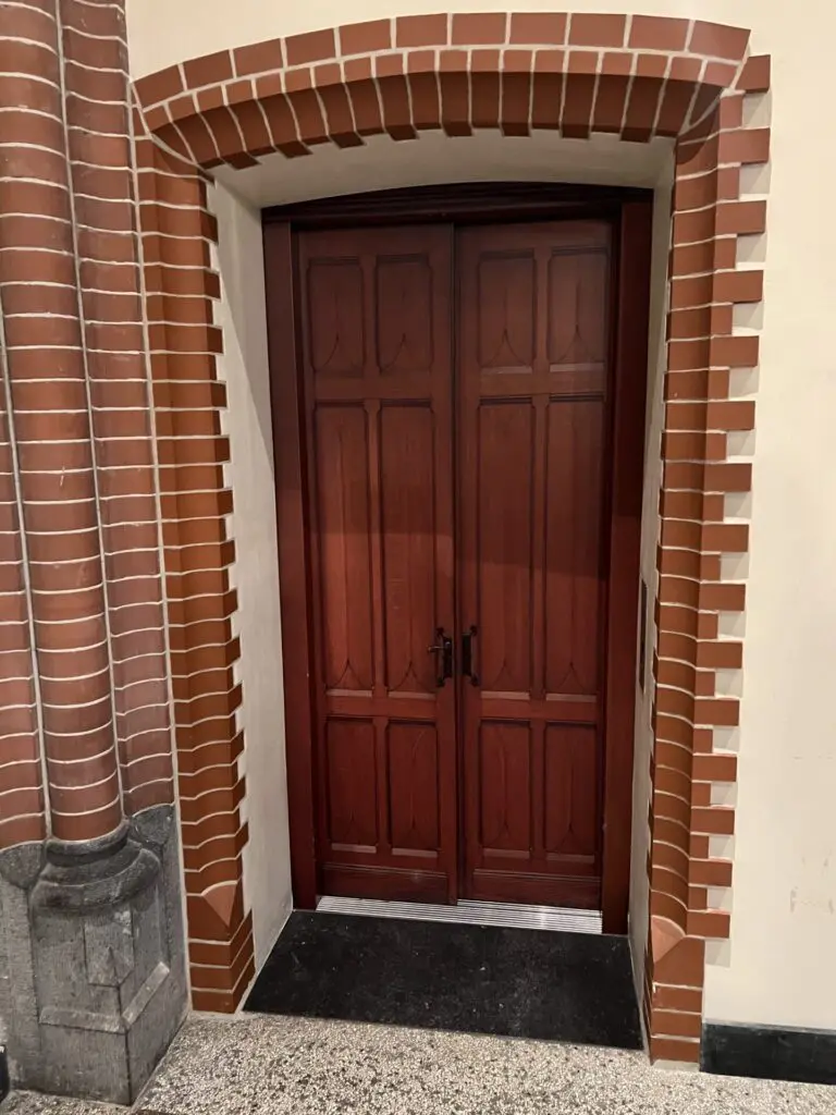 De enige plek waaraan ze kunnen zien dat er echt iets was veranderd, is bij de entree voor mindervaliden. Voor een snellere toegankelijkheid was de traplift vervangen door een echte lift. “Ik vond die metalen liftdeuren niet zo mooi. Dus heb ik een goede foto gemaakt van een andere deur in de kapel, dat ontwerp laten printen op folie en deze aangebracht op de liftdeuren. Het grappige is dat bezoekers nu geregeld de deurklink proberen vast te pakken. Zo echt lijkt het.”