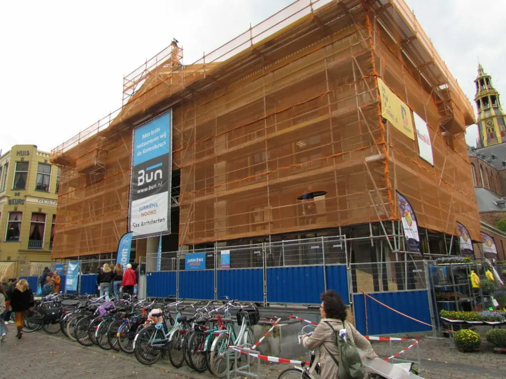 Het is ruim een half jaar na de eerste golf en de tweede golf overspoelt momenteel Nederland. Mondkapjes verschijnen in het straatbeeld en op de markt van Groningen is het lang niet zo druk als gebruikelijk. In een lucht van versgebakken vis en gebrande noten werken de schilders aan de Korenbeurs, in het hart van de stad. ‘Schilderwerk en het herstellen van kozijnen, dat is wat we hier doen’, zegt uitvoerder Raimon Gacka. ‘Jurriëns Noord is de hoofdaannemer, wij zijn een van de partners. Vorig jaar moesten we al een prijs maken en dat leidde in maart tot een opdracht.’