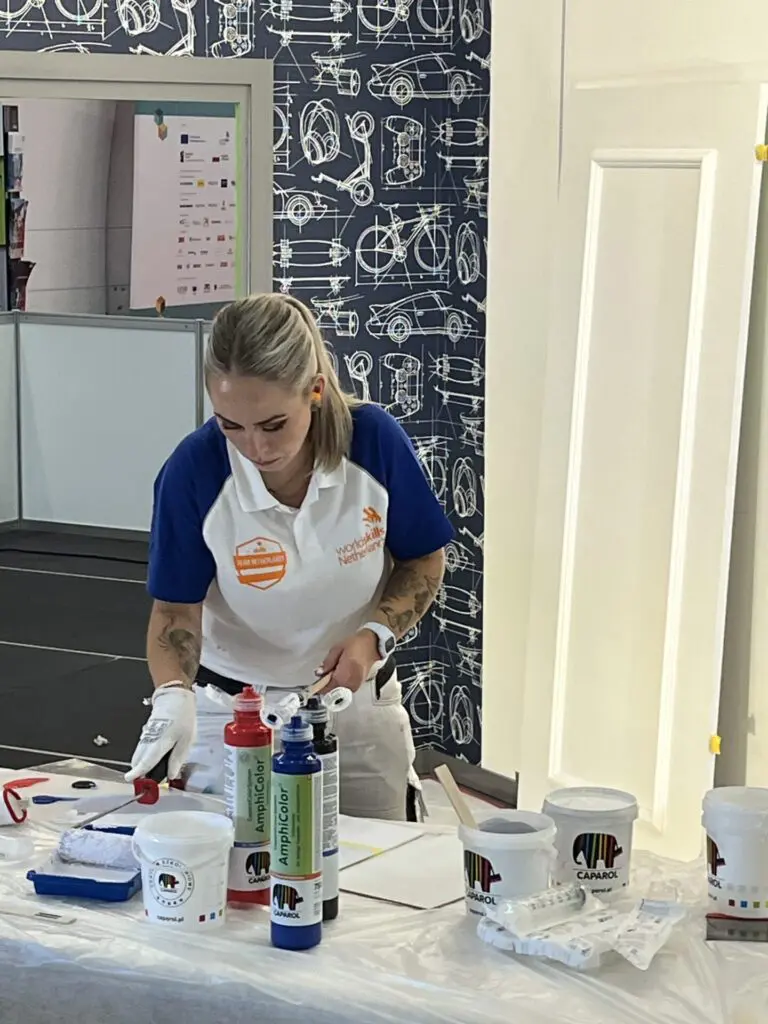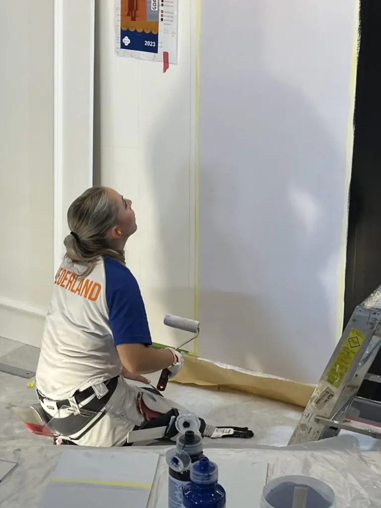 De 22-jarige Eerdman streed van 6 tot en met 9 september in Gdansk samen met veertien nationaal kampioenen schilderen om de Europese titel. Daaraan gingen maanden van trainen vooraf. Eerdman werd in haar jacht op succes bijgestaan door Erik Velers, instructeur bij SchildersVakopleiding Hengelo, Michèl Ravesloot, voormalig vakdocent aan het ROC van Twente en Johnny Serné, Expert WorldSkills Netherlands. ‘En in Gdanks waren veel Oranjesupporters. Familie, vrienden, collega’s, docenten. Die hebben me er die dagen doorheen gesleept.’