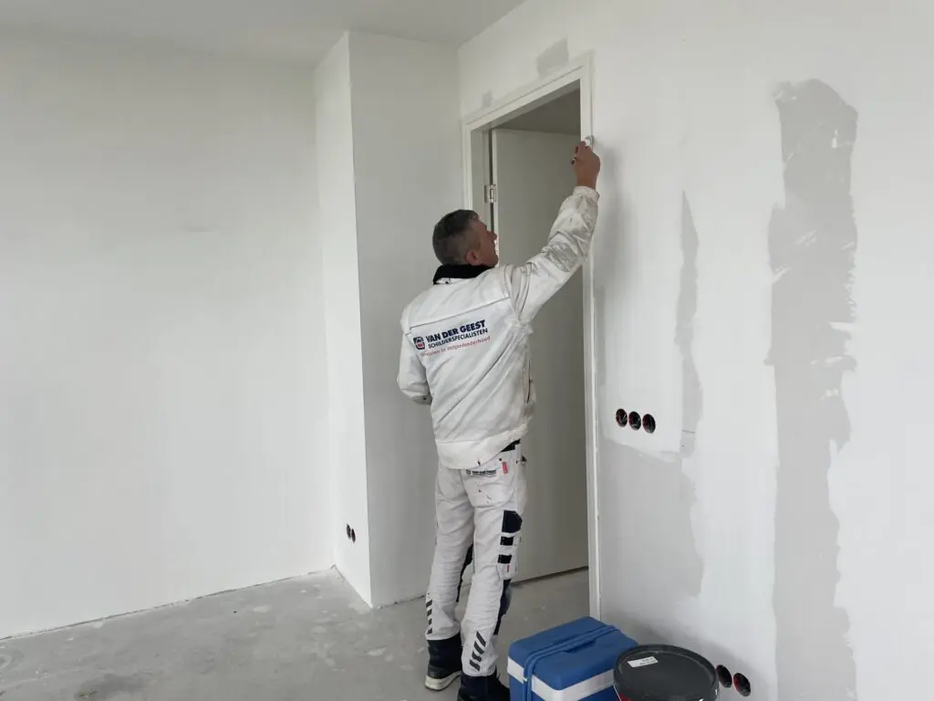 Van der Geest Schilderspecialisten uit Leeuwarden werkt momenteel in opdracht van Reitsma Bouw de appartementen van binnen af. Zo brengen de vaklieden onder andere glasweefsel aan op verschillende wanden in de trappenhallen en in diverse appartementen.