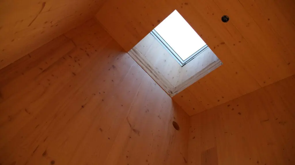 ‘Je hóeft er ook niets aan te doen’, benadrukt De Waal. ‘Constructief gebeurt er niets mee. Maar het sparrenhout verkleurt wel, onder invloed van zonlicht. Het vergeelt. En zeker in de begintijd wordt het geler op plekken waar de zon meer naar binnen schijnt. Wat een lelijk effect kan geven.’ De bewoonster van dit specifieke huis vond het te geel worden en had een schilder in de arm genomen. Maar die werd na twee plafonds bedankt voor de eer. Vermaas: ‘Die schilder had een filmvormende, pigmenthoudende beits gebruikt. En waarschijnlijk ook niet goed voorbehandeld. Doordat hij bepaalde plekken meerdere keren geraakt heeft is er baanvorming opgetreden. Het zag er erg lelijk uit. Dat was niet de goede weg. We hebben uren met de Rotex moeten schuren om die laag er af te krijgen.’