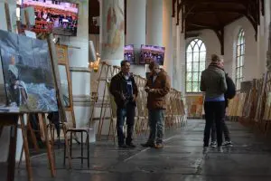 De Landelijke Schildersdag van de StudieClub Schilders (SCS) trok zaterdag 7 oktober zo’n 165 bezoekers. De Friese SCS-afdeling organiseerde deze zeventigste editie in Franeker. Het programma vond voornamelijk plaats in theater De Koornbeurs. De expositie van alle ingezonden werkstukken voor de vakwedstrijd was te zien in de Martinikerk. Ook kon een bezoek worden gebracht aan het Koninklijke Planetarium van Eise Eisinga. Hieronder een impressie van de dag. (Foto’s: Edwin Fabriek, Kees Knier en Wouter Mooij).