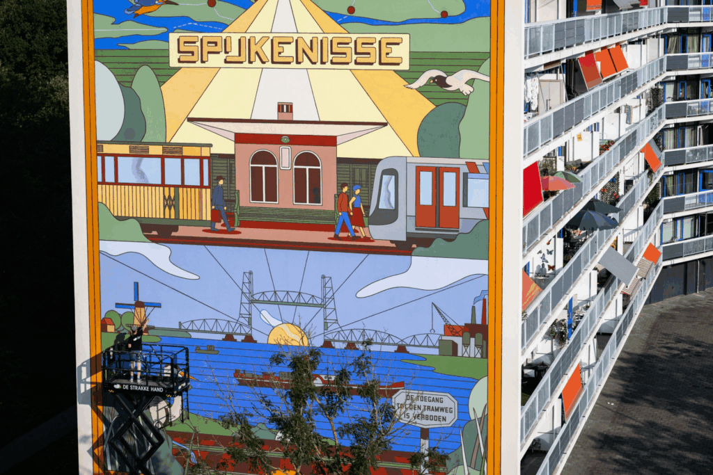 “We begonnen met een groot, leeg ‘canvas’ en het idee om iets moois te creëren voor de buurt. Samen met de gemeente hebben we de mogelijkheden besproken en kijk eens wat er nu staat: een kunstwerk dat niet alleen de gevel siert, maar ook het verhaal van Spijkenisse vertelt. Een echte aanwinst voor de buurt!”
