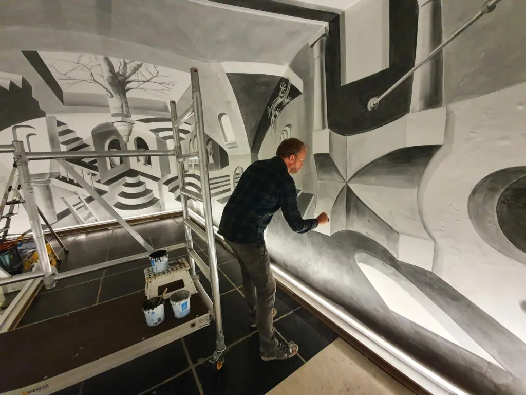 Ter ere van de expositie maakte straatkunstenaar Leon Keer een grote muurschildering in het museum. Hij liet zich daarbij inspireren door het werk ‘Hol en Bol’ van Escher.