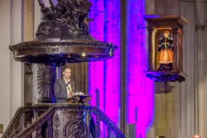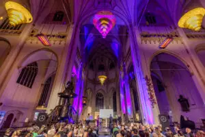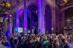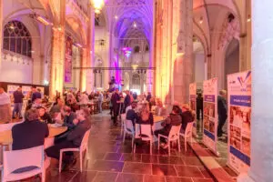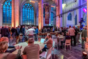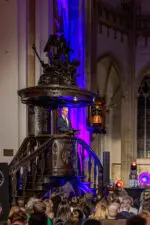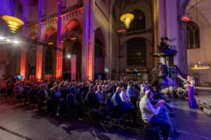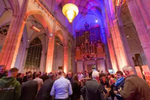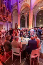 Waar Bot in 2020 verstek moest laten gaan, zat Gonny de Jongh nu thuis. Zij lag ziek op bed, terwijl ze samen met restaurator Rob Bremer het werk heeft uitgevoerd bij het winnende Jachtslot Mookerheide. Maar Gonny had een waardig vervanger: haar vader Gerard de Jongh, oud-eigenaar van het bedrijf. ‘Mijn grootvader is Schildersbedrijf De Jongh begonnen, met vier broers. Dat waren allemaal topschilders! Toen al. Ik leef nog altijd mee, ga met oud-personeel op pad. Volgend jaar gaan ze in Breda aan de slag, een kerkorgel restaureren. Een groot ding met vier klavieren. Jammer dat het orgel hier in de Eusebiuskerk niet open is, anders was ik er even op gaan spelen, want ik ben ook organist.’