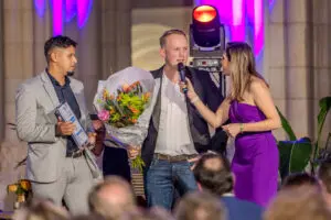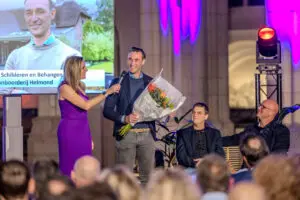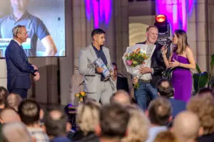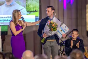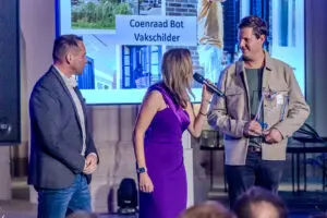 Coenraad Bot uit Huisduinen bij Den Helder ging ervandoor met de Klanttevredenheidspluim. Voor hem de tweede keer, nadat hij deze trofee – voor de meest tevreden opdrachtgever – in 2020 ook al in ontvangst nam. Destijds via een stream, want midden in de coronapandemie. ‘Ik zat alleen thuis in mijn kantoortje. Een heel andere beleving dan nu. Dat ik de prijs vanavond live in ontvangst mocht nemen, maakt het wel extra leuk. Ik zie het als erkenning dat mijn vrouw Inge en ik goed bezig zijn. Uiteindelijk runnen we het schildersbedrijf samen.’ Toch was Bot ook een klein beetje teleurgesteld. ‘Omdat mijn project het niet tot de drie genomineerden heeft geschopt in de categorie Onderhoudsschilderwerk. Ik zat wel in de voorselectie.’