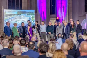 ‘Na een vergadering (met onder meer verschillende erfgoeddiensten, bouwbedrijf Van Dinther en Natuurmonumenten, red.) gingen we met het hele team meteen de steiger op om de resultaten van het overleg te bevestigen en toe te lichten’, zei bedrijfsleider Ronnie van Weelden tijdens de borrel na de uitreiking. Directeur Richard van Mierlo: ‘Toen ik de jury hoorde over plafond, wandvlakken en militaire precisie, dacht ik: dat zullen wij toch niet zijn? Ik denk dat we het verdiend hebben. Een dikke pluim voor dit project, waarvan alle betrokkenen in dienst hebben gestaan.’