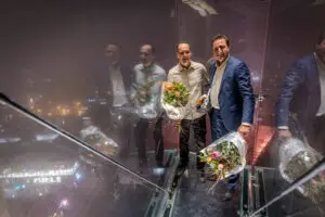Eyoub Abdu van De Vakbroeders – winnaar van de categorie Nieuwbouw- & Renovatieschilderwerk met een luxe nieuwbouwvilla – ging daar nog overheen: ‘Prachtig, deze erkenning van mensen uit het vak. Volgend jaar gaan we voor de overall-juryprijs.’ Zijn compagnon Jur Broeders: ‘Onze opdrachtgever keek mee op de livestream en kreeg ook kippenvel toen wij als winnaars werden uitgeroepen.’ Hoewel De Vakbroeders volgens het stereotype een bourgondische inborst zouden moeten hebben (want Brabanders), toonden zij zich eerder calvinisten. ‘Een feestje? Ongetwijfeld. Maar eerst morgen weer gewoon aan het werk.’