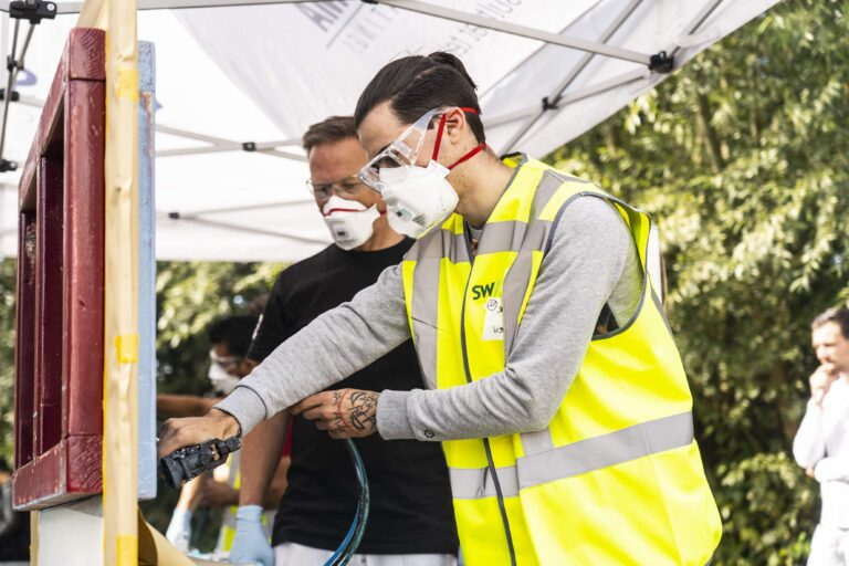 Op zeven verschillende plekken op het terrein in de wijk Overvecht gingen de deelnemers onder leiding van leermeesters en vaklieden aan de slag met onder andere houtrotreparatie, applicatie- en schuurtechnieken en steigerbouw.