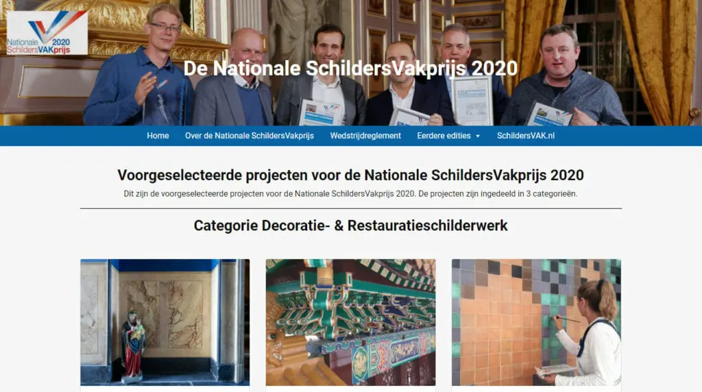 Ondertussen buigt de vakjury zich over de lastige taak om uit al deze voorgeselecteerde projecten negen nominaties te kiezen en op locatie te beoordelen in de drie categorieën: Nieuwbouw- en Renovatieschilderwerk, Onderhoudsschilderwerk, Decoratie- en Restauratieschilderwerk.