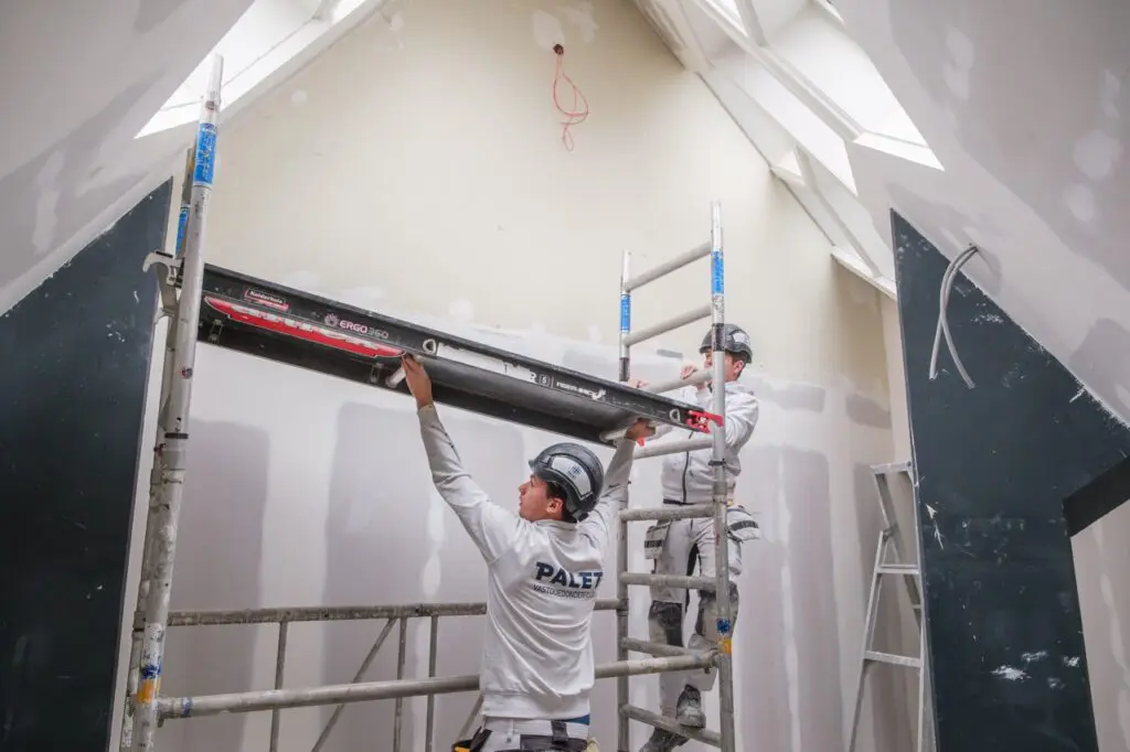 Aan Palet de taak om hier al het binnenschilder- en spuitwerk te realiseren. De schuine wanden, unieke hoeken en ruimtes vragen om maatwerk in voorbereiding en afwerking. Onder andere op het gebied van steigeropbouw om moeilijk bereikbare hoeken te kunnen bereiken. Na renovatie telt het hostel 51 kamers (voorheen 48), elk met een uniek karakter passend bij de bijzondere geometrie, aldus de betrokken partijen.
