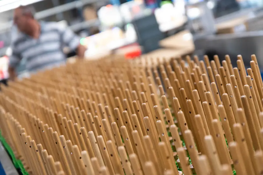 Op jaarbasis rollen er bij Van Dam’s Kwastenfabriek een miljoen kwasten van de band. Het geheim van een goede kwast? Algemeen directeur en eigenaar John Feimann geeft een kijkje in de keuken: “Het begint bij de keuze van de grondstoffen. We kiezen het beste haar, beukenhouten stelen en rvs bussen voor onze welbekende Goudhaantje-kwasten. We doen geen concessies aan de kwaliteit ten gunste van de prijs. Neem bijvoorbeeld de synthetische vezels. Voorheen gebruikten we varkenshaar. De speciaal voor ons ontwikkelde vezels kunnen wij in de juiste verhoudingen mixen, zodat we te allen tijde de juiste kwaliteit kwast kunnen leveren afgestemd op de verf.”